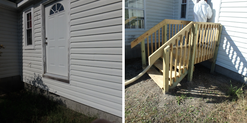 “Justin” is a senior citizen in Onslow county with multiple chronic health conditions including musculoskeletal issues, heart disease, stroke, arthritis and heart disease. Justin had recently broken his femur bone in two places. The old wooden stairs to his home were not safe for him to continue using. The Healthy Homes Initiative funding was used to provide new stairs and a landing to his home.